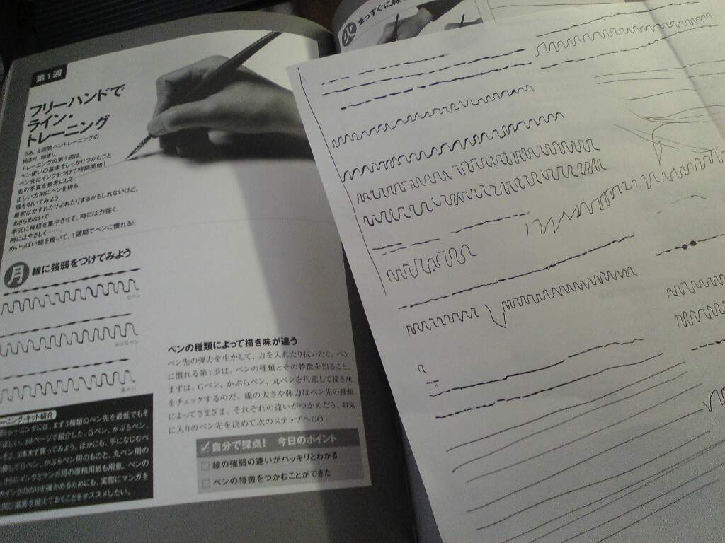 漫画の描き方の本に載ってた、「ライントレーニング4週間」を始める事にしました。